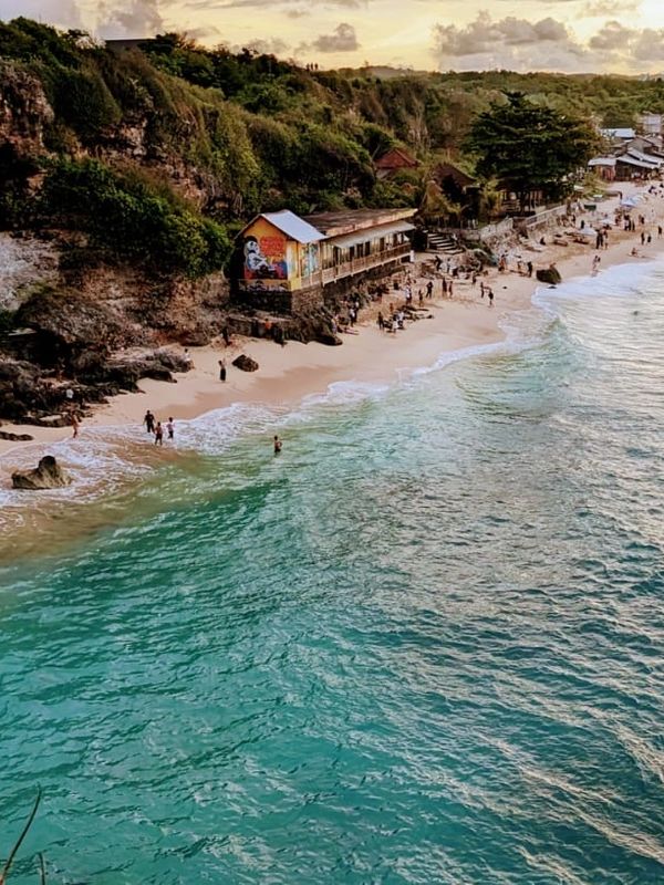 Melasti Beach - stretch of white sand, good for swimming with a number of smaller beach clubs located along the back of the beach. No steps to access this beach.
